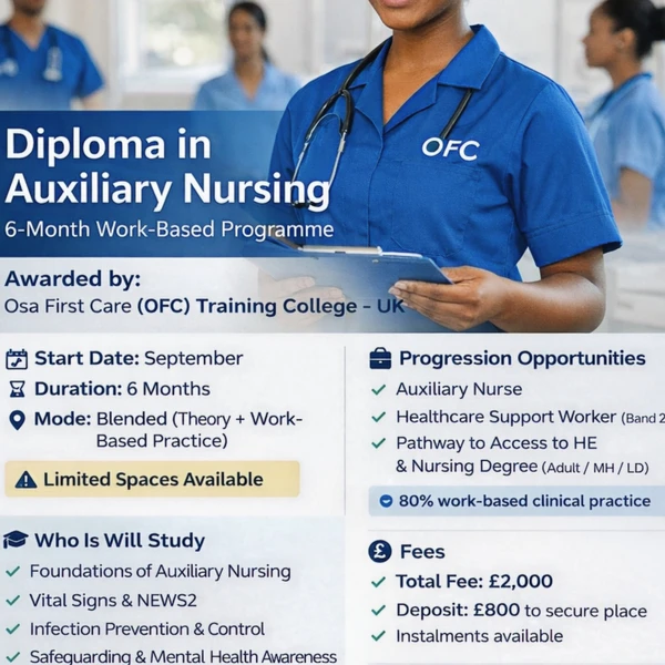 Osa First Care (OFC) College is an Accredited Healthcare, Education and Train The Trainer Organisation.
